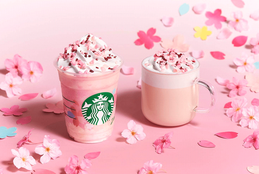 2. As marcas entram com tudo para aproveitar esse período! A Starbucks, por exemplo, sempre lança um frappuccino sabor sakura 🥤