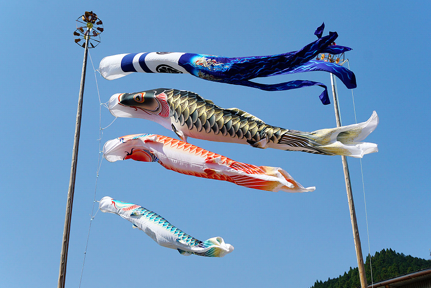 Bandeiras coloridas de carpas (koinobori) são hasteadas para celebrar a data 🎏